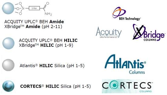 1. HILIC柱是親水相互作用色譜柱 2. 保留和分離極性化合物,如強極性堿或含胺的極性有機物等 3. HILIC提供與反相色譜柱互補的分離選擇性 | 1. 反相方法無法保留強極性化合物的用戶 2. 需要與反相色譜柱互補選擇性的用戶 3. 期望提高質譜響應與檢測靈敏度的液質聯用的用戶 |