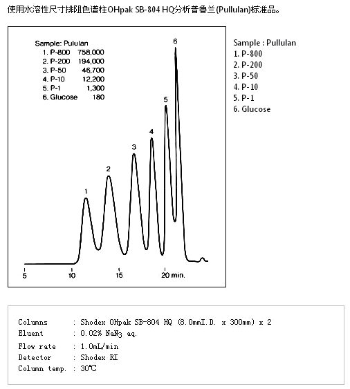 OHpak SB-800 HQ色譜柱的校準(zhǔn)曲線