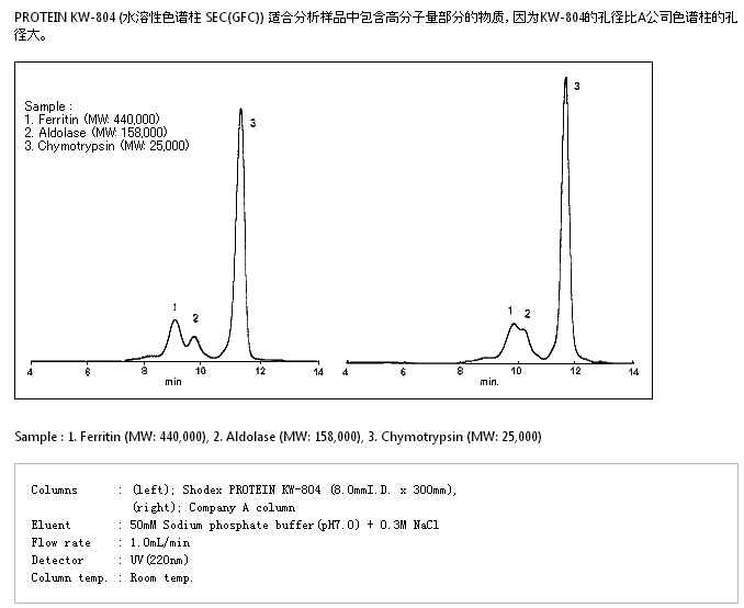 蛋白質(zhì)的分子量范圍(流動(dòng)相 :磷酸緩沖液)