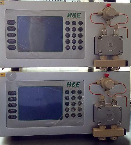 柱塞泵是目前液相色譜主流的輸液單元,特別是雙柱塞往復(fù)泵。它有一個精心設(shè)計的偏心凸輪,用同步電機或變速直流電機驅(qū)動偏心凸輪,偏心凸輪再推動兩活塞作往復(fù)運動。偏心凸輪短半徑端所對應(yīng)的活塞向外伸,使該活塞的下單向閥打開吸入流動相,與此同時,偏心凸輪的長半徑端所對應(yīng)的另一活塞被推入,使其上單向閥打開,并將流動相送至色譜柱。具有操作方便、流速穩(wěn)定、壓力脈動小、故障率低的優(yōu)點。根據(jù)流量大小一般可分為分析型和制備型。