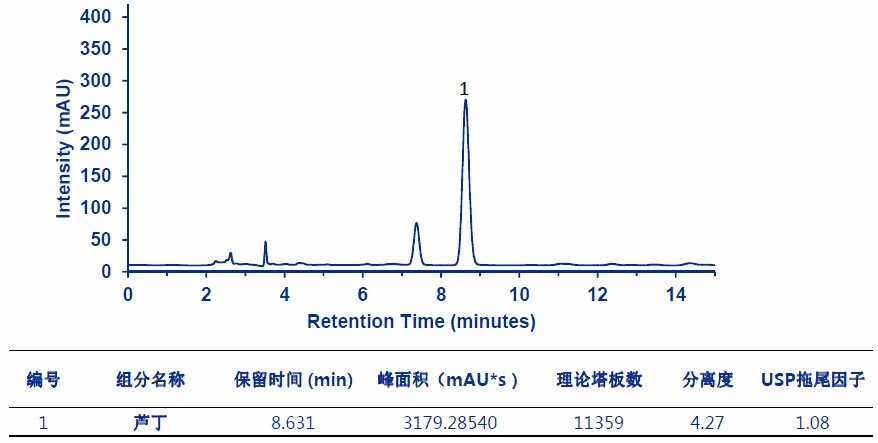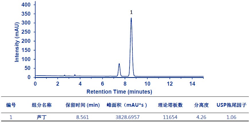 檢測(cè)波長(zhǎng):氫氯噻嗪檢測(cè)波長(zhǎng)為224nm;蘆丁檢測(cè)波長(zhǎng)為256nm。