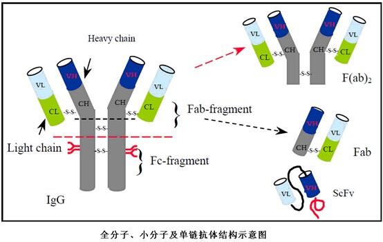 抗體的Fab區(qū)域含可變區(qū)和恒定區(qū),可以與特異的抗原結(jié)合,F(xiàn)ab抗體片段藥物有更好的穿透力。只含有一個Fab臂,分子量在~50kDa。Centocor公司的ReoPro(abciximab)是重組嵌合Fab抗體片段。