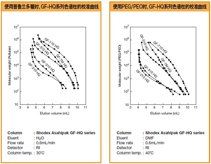 Asahipak GF系列色譜柱的校準(zhǔn)曲線
