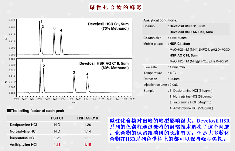 HILIC模式的柱子已經(jīng)有很多對極性化合物有良好保留的案例,但是,請嘗試一下Develosil的HSR系列色譜柱,你會發(fā)現(xiàn)這一系列柱子優(yōu)秀的的耐用性以及作為反相柱的便捷性。