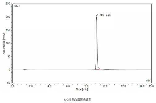 分析結(jié)果表明,IgG與前面雜質(zhì)峰的分離度Rs為18.99,兩次進(jìn)樣測(cè)定結(jié)果的算數(shù)平均差值與算術(shù)平值比值為0.26%,完全滿足國標(biāo)中規(guī)定的檢測(cè)要求。