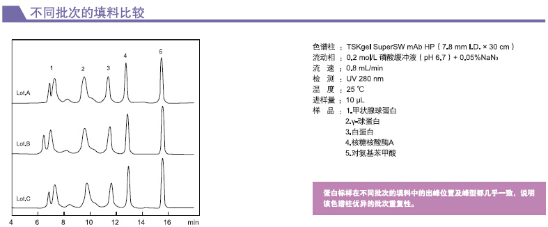 1. TSKgel SuperSW柱有內(nèi)徑為4μm的顆粒,能實現(xiàn)最高分辨率。窄至4.6mm內(nèi)徑的柱能在一定量的樣品質(zhì)量范圍內(nèi)提高高靈敏度。